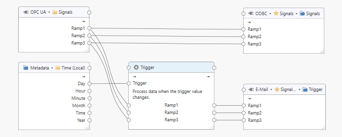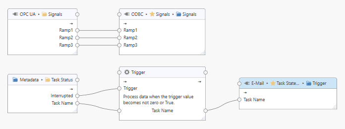 The task stores some signals into a database and in addition monitors the task state. If the ‘Interrupted’ flag turns ‘True’ then an e-mail is sent.