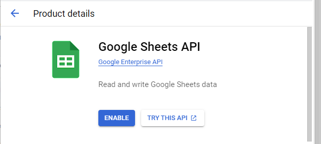 Click “Enable” to enable the Google Sheets API.